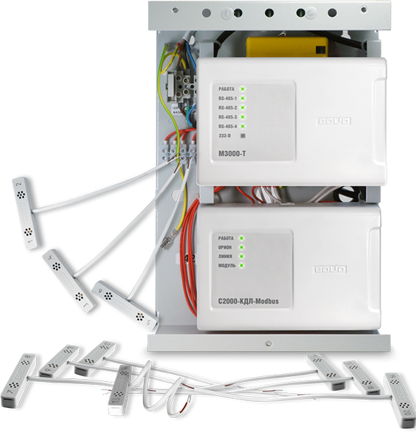 запитывать датчики и считывать информацию с датчиков по двухпроводной линии связи контроллера "С2000-КДЛ Modbus"