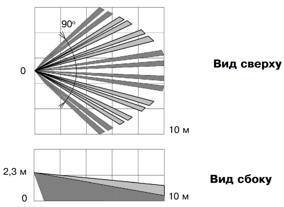 | Угол зоны (Охранные датчики) | 90° объемная |